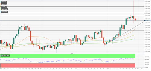 FXStreet撰文称,尽管临近周末出现了大幅回调,但黄金的短期前景尚未显示出看跌的转变。自2月初以来的上升趋势线保持不变,日线图上的相对强弱指数(RSI)位于50上方,价格保持在20日、50日、100日和200日均线上方。