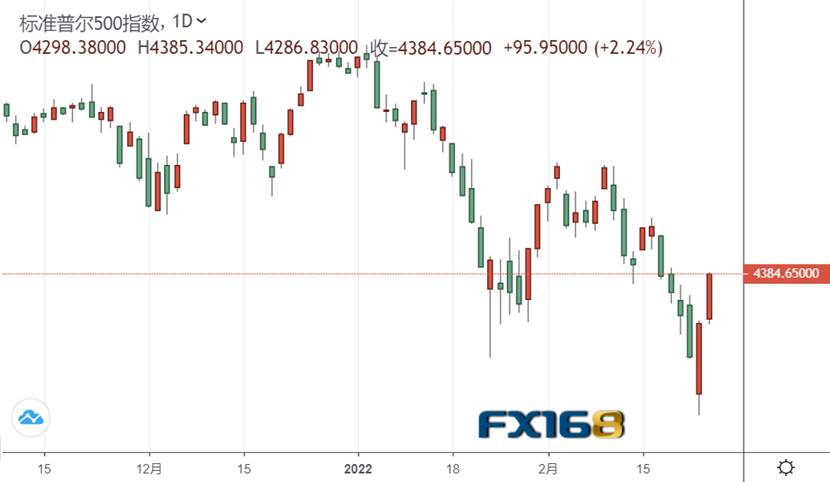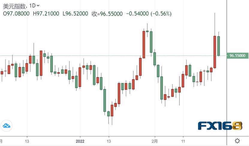 市场表现来看,美股急挫后强势反弹,美元一度冲破97关口随后回落,原油价格因乌克兰局势一度飙升突破100美元,黄金巨震近100美元整体冲高下跌。