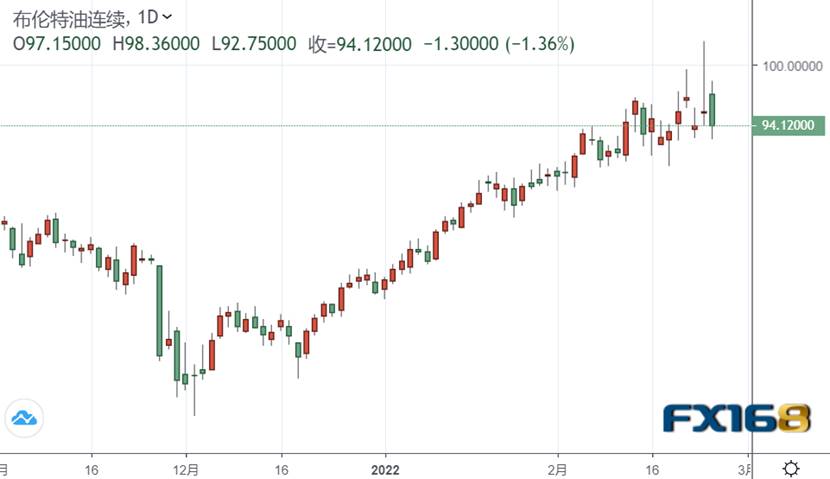 OANDA的高级市场分析师Jeffrey Halley表示:“昨天俄乌局势曾短暂退出头条新闻,但在一夜之间又不可避免地重新浮现,再次促使人们逃向安全资产,且全球能源供应中断的担忧提振油价。