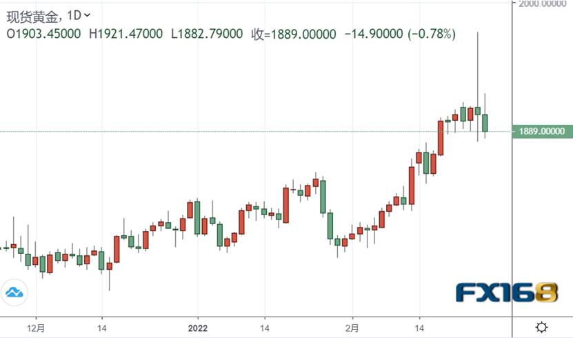 投资者纷纷避险,美国10年期国债收益率跌至1.9%。金价一度达到了自2020年9月以来的最高水平,日内涨超60美元站上1970美元。