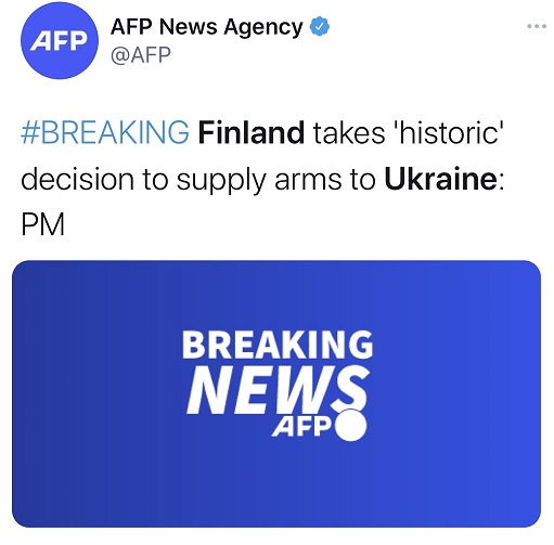 FX168财经报社(香港)讯 俄罗斯日前威胁芬兰不准加入北约(NATO),否则将面临严重军事后果。芬兰总理马林(Sanna Marin)周一(2月28日)宣布,芬兰将向乌克兰运送武器和弹药。这项“历史性的决定”,象征芬兰在二战后以来的立场转变。