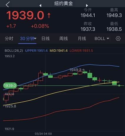 24K99讯 周四(3月24日)亚市盘中,黄金期货仅小幅上涨,期金目前交投在1939美元/盎司附近,较日内高点回落逾10美元。Kshitij咨询服务团队(Kshitij Consultancy Service)周四最新撰文,对黄金期货、白银期货、原油期货和铜期货后市走势进行前瞻分析。