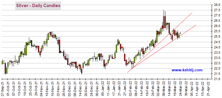 白银方面,Kshitij咨询服务团队称,白银期货也走高,若守在支撑位24美元/盎司上方,那么前景依然看涨。