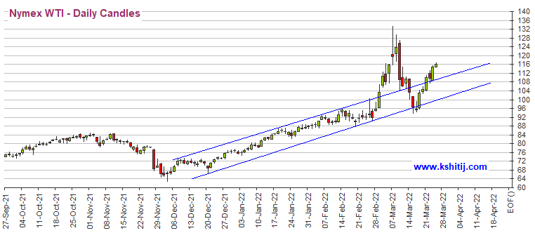 原油方面,Kshitij咨询服务团队表示,布伦特原油期货如我们预期般上涨。假如上升动能继续,那么布伦特油价可能在下周结束前再次尝试测试此前高点139美元/桶。只要保持在112美元/桶上方,那么布油价格可能在未来两个交易日升至132美元/桶。