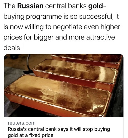 FX168财经报社(香港)讯 俄罗斯央行周四(4月7日)表示,由于“市场状况发生重大变化”,该央行将于4月8日起以协商价格从商业银行处购买黄金。