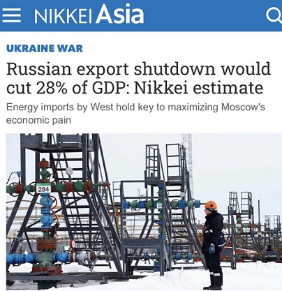 FX168财经报社(香港)讯 据日经新闻(Nikkei)和日本经济研究中心(Japan Center for Economic Research)估计,通过制裁完全切断俄罗斯的出口,将损失最多达到相当于名义国内生产总值(GDP)的近三成。