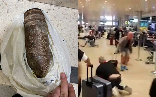以色列机场管理局表示,当安全人员发现未爆炸的炮弹时,他们拉响了紧急警报并下令疏散机场。