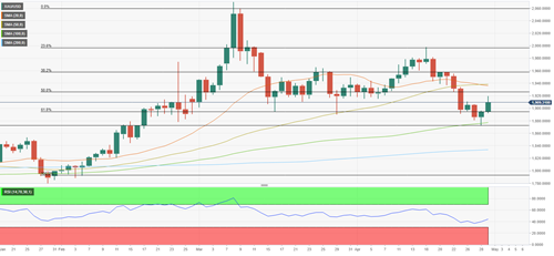 FXStreet撰文指出,日线图上的相对强弱指数(RSI)正向50方向上升,表明看空势头已经消失。上行方向,1930美元(2-3月上行趋势的50%斐波那契回档位)为关键阻力位,在美联储宣布政策之前,黄金可能会在该水平与1900美元(心理水平,61.8%斐波那契回档位)之间盘整。