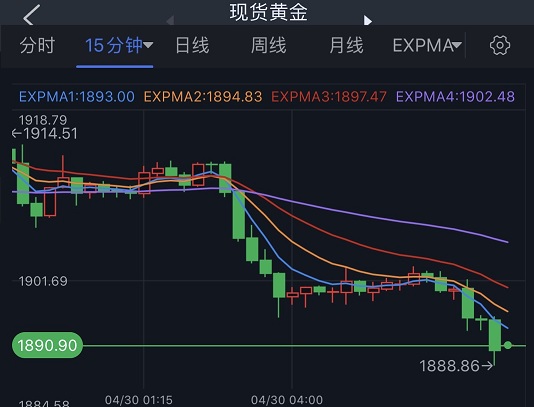 FX168财经报社(香港)讯 周一(5月2日)亚市盘中,金融市场出现波动。美元指数短线出现一波急涨,现货黄金加速下滑,金价刚刚一度跌破1890美元/盎司关口。本周投资者将迎来美联储利率决议和美国非农就业报告,预计将引发市场重大行情。