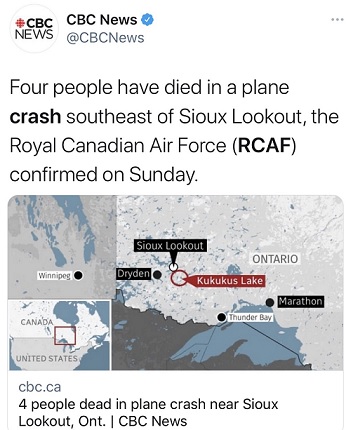 安大略省警方发言人艾莉森·劳伦斯(Allison Lawrence)告诉加拿大广播公司(CBC),安大略省警方已派出一支专业队伍调查坠机原因,并确定飞机上的四名死者。