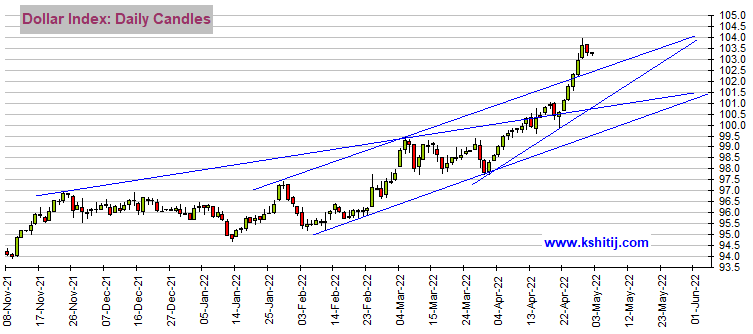 FX168财经报社(香港)讯 周一(5月2日)亚市盘中,美元指数维持升势,现报103.45附近。Kshitij咨询服务团队(Kshitij Consultancy Service)周一最新撰文,对美元指数、欧元/美元、欧元/日元、美元/日元、澳元/美元、英镑/美元以及美元/人民币后市走势进行前瞻分析。