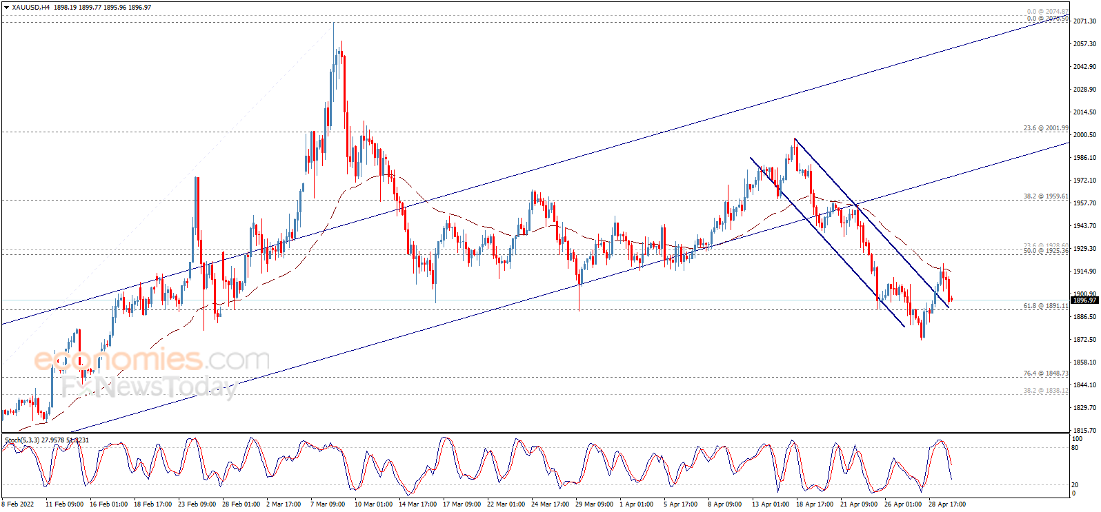 24K99讯 周一(5月2日)亚市尾盘,现货黄金维持跌势,金价目前交投在1887美元/盎司附近,日内下挫逾10美元。知名财经资讯网站Economies.com周一最新撰文,对日内黄金走势进行前瞻分析。