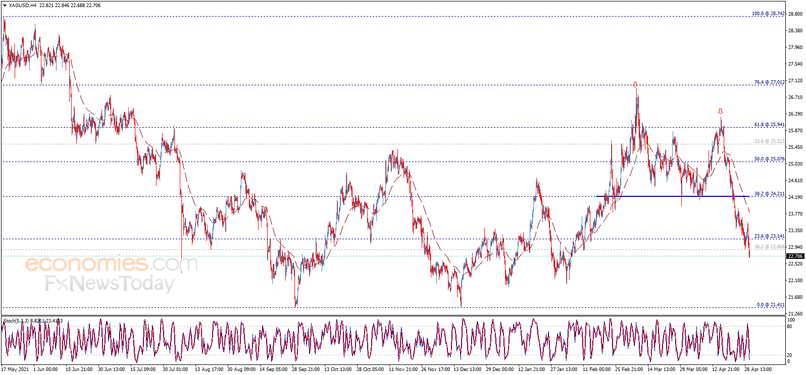 Economies.com预计,今日银价交投将位于支撑位22.20美元/盎司以及阻力位23.00美元/盎司之间。