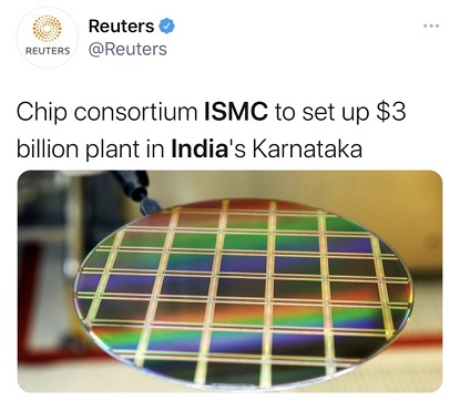 FX168财经报社(香港)讯 印度南部卡纳塔克邦(Karnataka)政府当地时间周日(5月1日)表示,国际半导体财团ISMC将在该邦投资30亿美元,建立一家芯片制造厂。