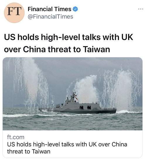 三位知情人士表示,美国希望加强与英国等欧洲盟友的合作,以提升盟友对“北京对台日益强硬”的认知。不过美国这样做并非因为一种“立即性威胁”而与英国接触,而是如同美国与日本、澳大利亚为“台海可能的冲突”而进行的对谈一样。