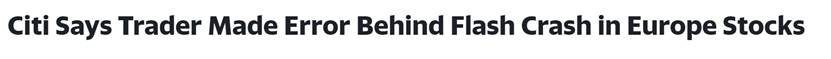 花旗集团说,其伦敦交易部门是欧洲股市闪电暴跌的幕后黑手。在瑞典股市突然下跌8%之后,欧洲股市也随之大幅下挫。
