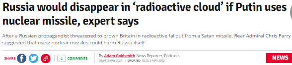 FX168财经报社(北美)讯 周二(5月3日),一名退休的英国皇家海军军官驳斥了一名俄罗斯宣传者要用放射性尘埃淹没英国的威胁。