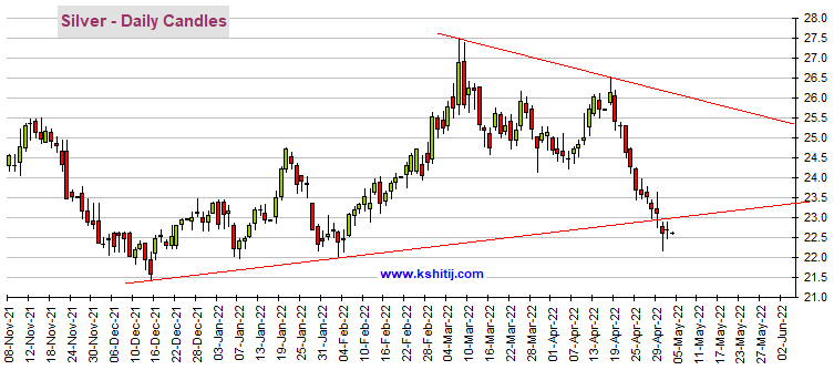 白银方面,Kshitij咨询服务团队表示,白银期货昨日一度测试22.44美元/盎司的低点,并可能如预期般跌向21.20-21.00美元/盎司。只要保持在23美元/盎司下方,那么观点仍为看跌。