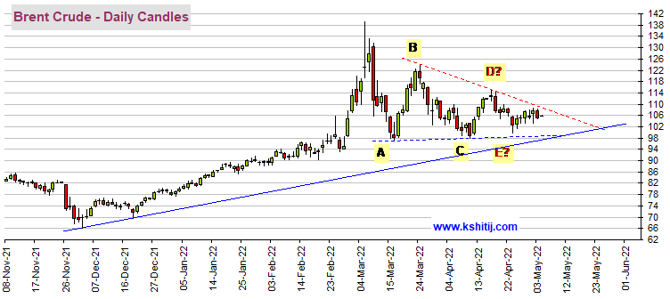原油方面,Kshitij咨询服务团队表示,WTI原油期货可能会跌向96-92美元/桶,而阻力位105美元/桶继续保持强劲。