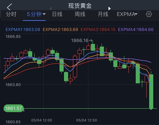 香港时间14:09,现货黄金报1861.57美元/盎司。