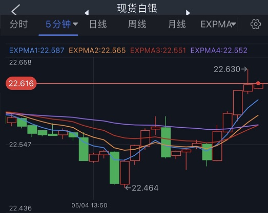 24K99讯 周三(5月4日)欧市早盘,现货白银短线突然急涨,银价最新升至22.60美元/盎司上方,最高一度触及22.63美元/盎司,刷新日内高点。知名财经资讯网站Economies.com周三最新撰文,对日内白银走势进行前瞻分析。