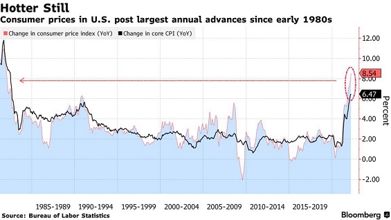 美国3月的消费者物价指数(CPI)同比增长8.5%,创近40多年以来的最大升幅。