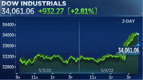 FX168财经报社(北美)讯 周三(5月4日),美国股市大幅上涨,此前美联储宣布将利率上调0.5个百分点(50个基点),美联储主席鲍威尔则排除了美联储在抗击通胀行动中采取更激进措施的可能性。
