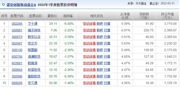 我们来看看其旗下基金的最新持仓情况: