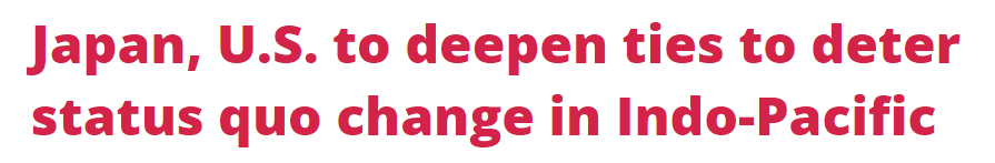 在今年1月的日本和美国外交和防卫首脑的虚拟会议上,他们表达了他们对中国破坏基于规则的国际秩序的举动的担忧,并发誓要“阻止并在必要时回应”他们认为破坏稳定的事情该地区的活动。