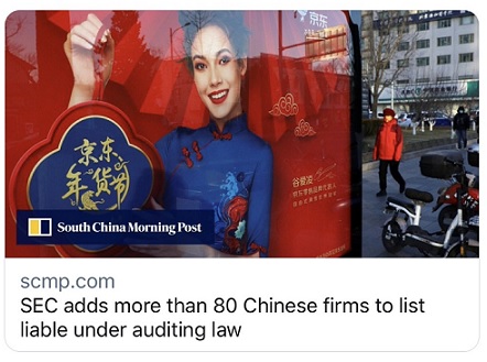 FX168财经报社(香港)讯 美国证券交易委员会(SEC)当地时间周三(5月4日)将包括京东、拼多多、哔哩哔哩在内的80多家公司列入可能被美国证券交易所摘牌的名单中,原因是无法检查这些公司的审计底稿。