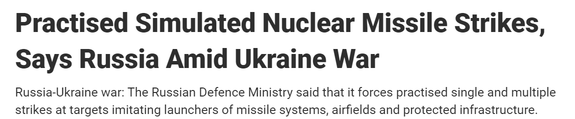 观察人士表示,近几天来,俄罗斯国家电视台企图让大众更能接受使用核武。俄罗斯报纸编辑与诺贝尔和平奖得主穆拉托夫(Dmitry Muratov)昨天表示:“近两周以来,我们一直听到电视上说应该打开核弹发射地下掩体。”
