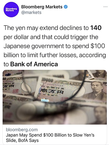 美银分析师表示:“日元汇率已经疲弱到市场开始关注政府是否会出手干预。”