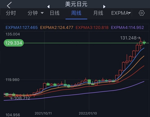 (美元/日元周线图 截图来源:FX168)