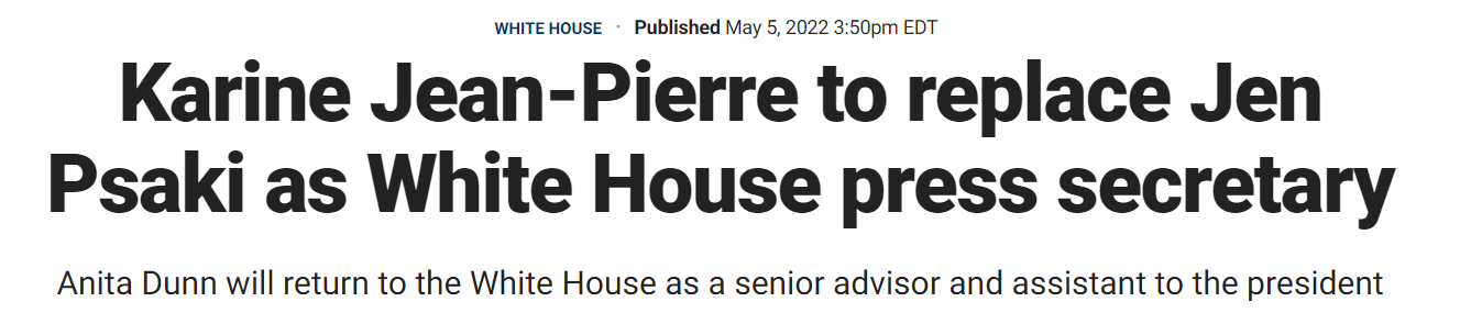 据路透社5日报道,普萨基将在本月13日离职,她在美国总统拜登2021年1月上任之初就已透露,计划担任此职务约1年的时间,而皮埃尔自拜登总统任期以来就担任白宫副新闻祕书。