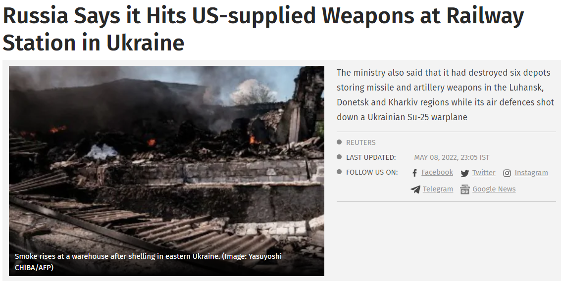 FX168财经报社(香港)讯 俄罗斯国防部周日宣称,其高精度飞弹在乌克兰东部索莱达镇(Soledar)附近火车站,摧毁美国与其他西方国家提供给乌国的武器与军用装备。俄罗斯总统普京展开反击,同时也击落乌军苏恺25(Su-25)战机。