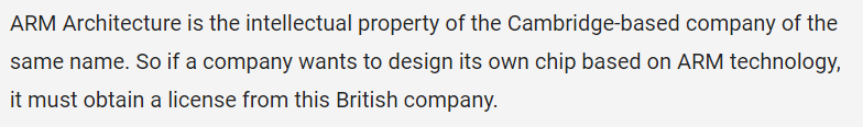 Zive提到,安谋架构是这家位于剑桥的同名公司的知识产权。所以如果一家公司想要基于安谋技术设计自己的芯片,就必须获得这家英国公司的许可。