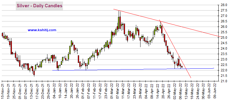 白银方面,Kshitij咨询服务团队表示,白银期货继续走低,只要保持在22美元/盎司下方,那么银价中期内可能跌向21.50-21.00美元/盎司。