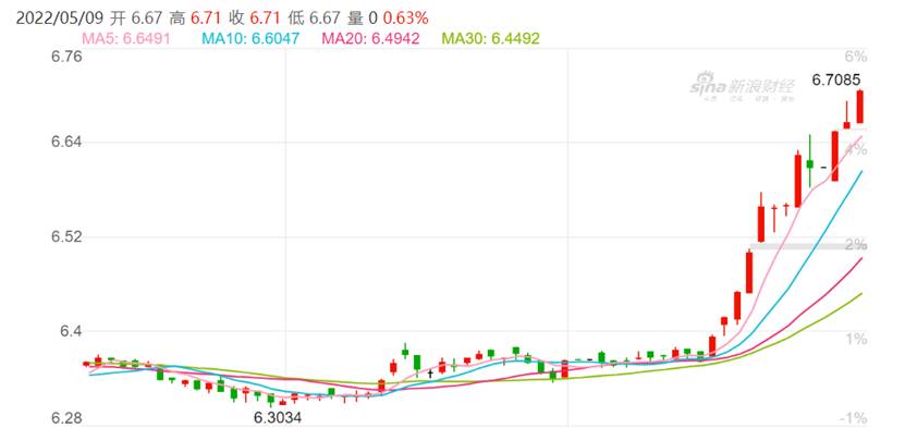 与此同时,在岸人民币兑美元逼近6.71关口,跌幅均超过300点。