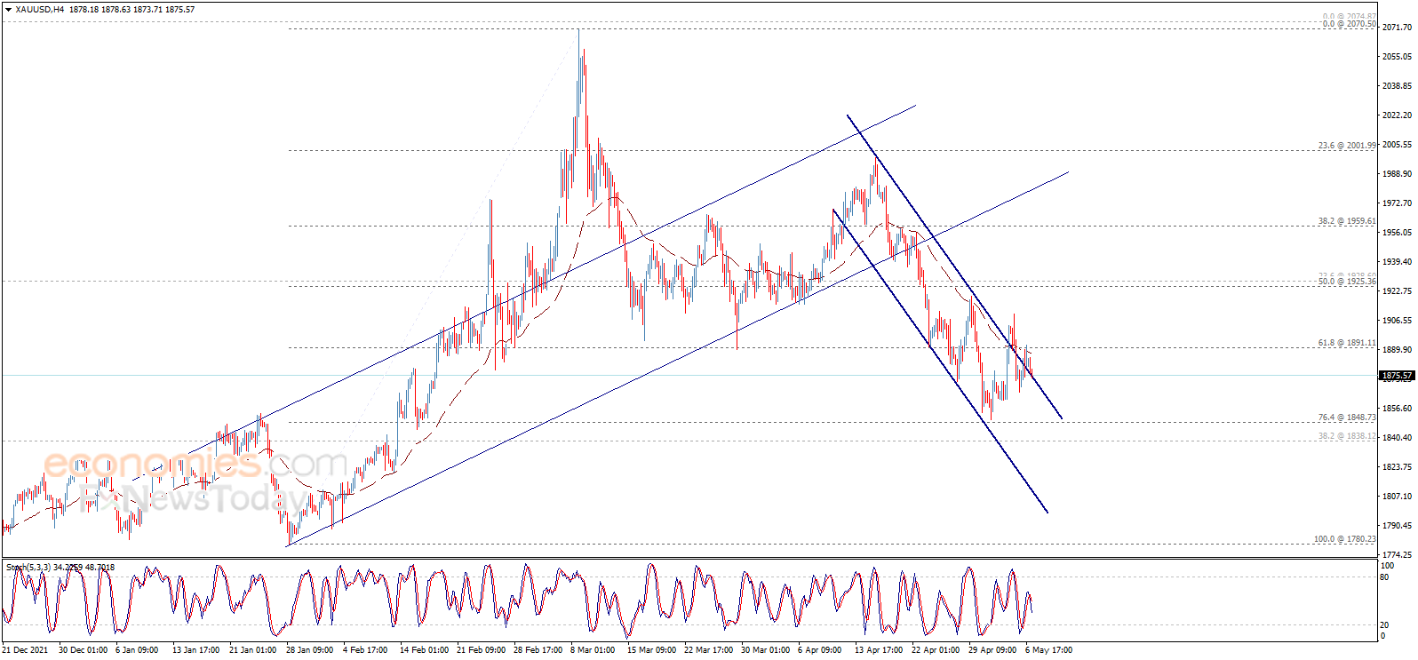 (现货黄金4小时图 来源:Economies.com)