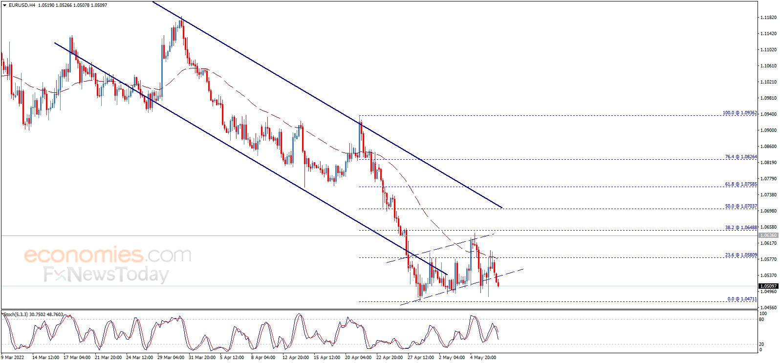 从4小时图来看,EMA 50指标继续支持欧元/美元延续看空走势。除非欧元/美元反弹突破1.0580,并保持在这一水平上方,否则看空预期仍将有效。