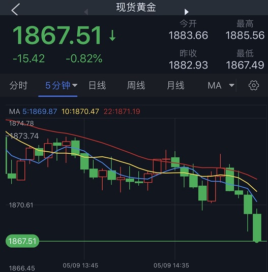 (现货黄金5分钟图 来源:FX168)