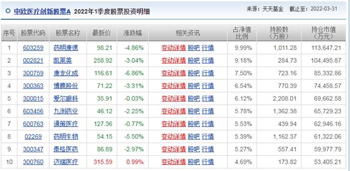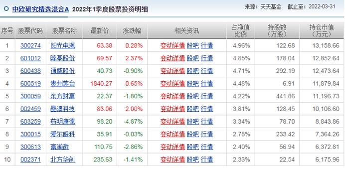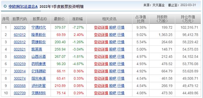 我们再来看看各基金的持仓情况: