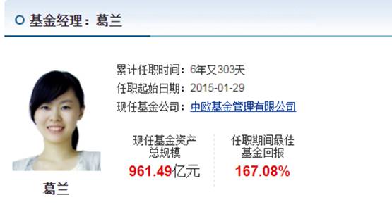 中欧基金 葛兰 961.49亿
