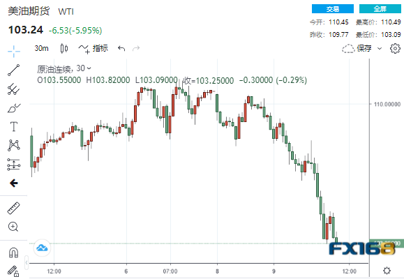 (美油30分钟走势图,来源:FX168)