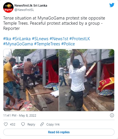 随后,支持者们首先拆除了总理Temple Tree官邸前抗议者的帐篷,并焚烧了反政府横幅和标语。