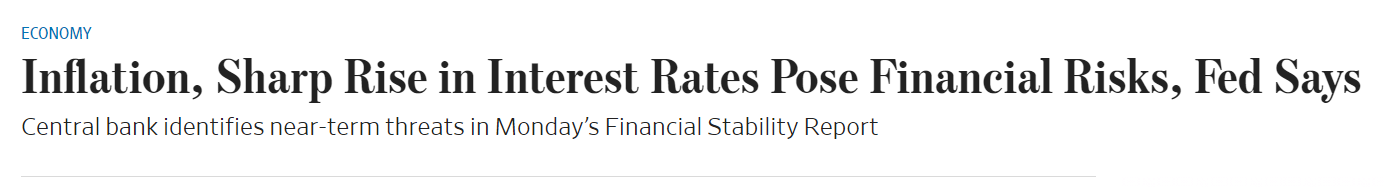 英国金融时报、华尔街日报报道称,美联储9日在5月与11月都会固定公布的《金融稳定报告》(Financial Stability Report)中警告说:“通胀与利率若出现更多令人意外的负面消息,恐令金融系统受创,尤其是伴随经济活动降温之际。”
