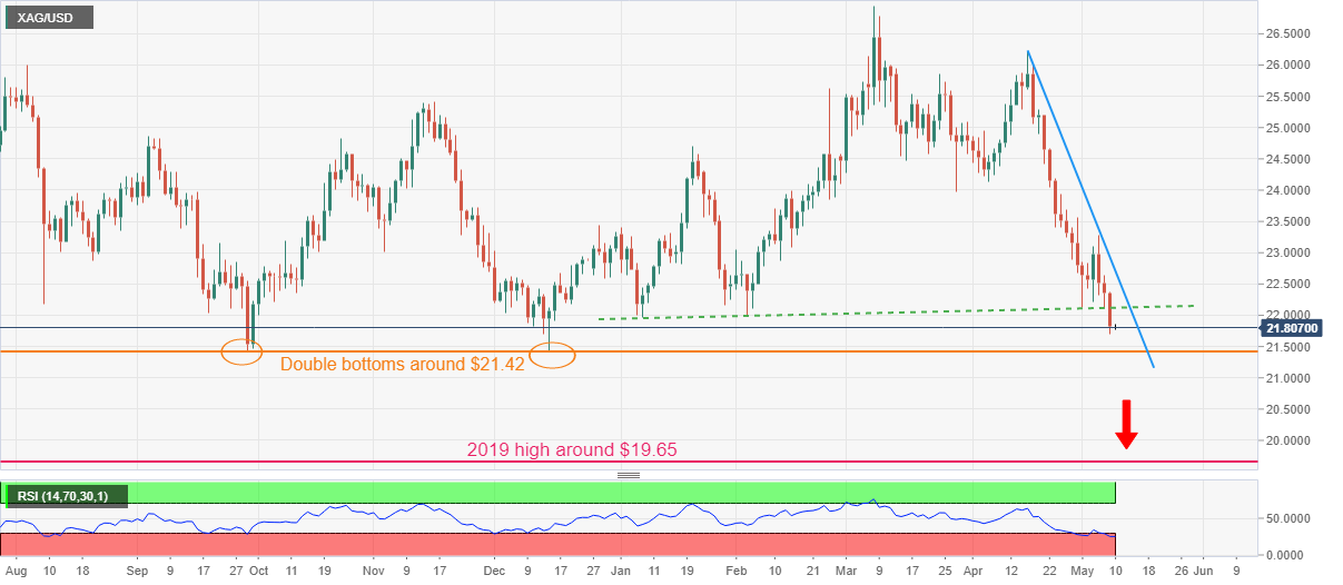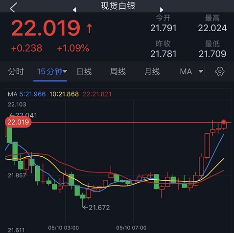 24K99讯 周二(5月10日)亚市盘中,美元出现回落,现报103.60附近。受美元走软推动,现货白银大幅反弹,银价刚刚突破22.00美元/盎司关口。知名财经网站FXStreet分析师Anil Panchal周二最新撰文,对银价技术前景进行分析。Panchal指出,假如攻克短期阻力22.15美元/盎司,银价有望进一步大幅反弹。