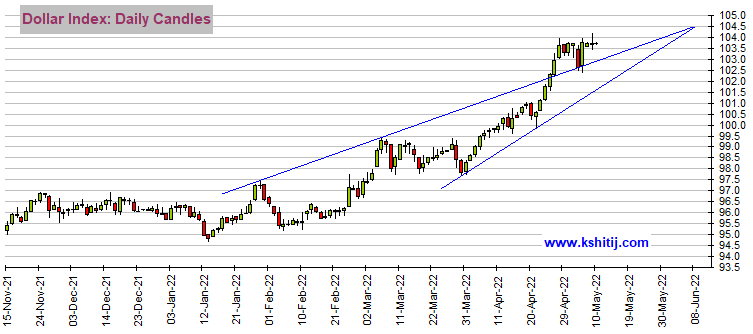 FX168财经报社(香港)讯 周二(5月10日)亚市盘中,美元指数明显回落,现报103.55附近。Kshitij咨询服务团队(Kshitij Consultancy Service)周二最新撰文,对美元指数、欧元/美元、欧元/日元、美元/日元、澳元/美元、英镑/美元以及美元/人民币后市走势进行前瞻分析。