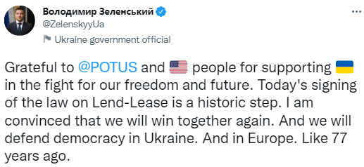 当地时间周一早些时候,拜登签署2022年乌克兰民主国防租借法案,以简化美国对乌克兰或东欧国家的武器和其他材料的供应。白宫表示,简化军事装备流动的租借法案“基于二战时期帮助欧洲抵抗希特勒的计划”。
