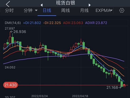 现货白银周二暴跌逾2%,最低触及21.16美元/盎司,创下近两年低点。